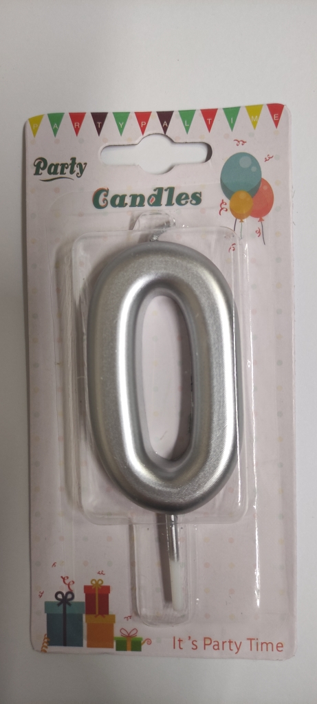 Žvakutė tortui skaičius 0 sidabrinės sp.