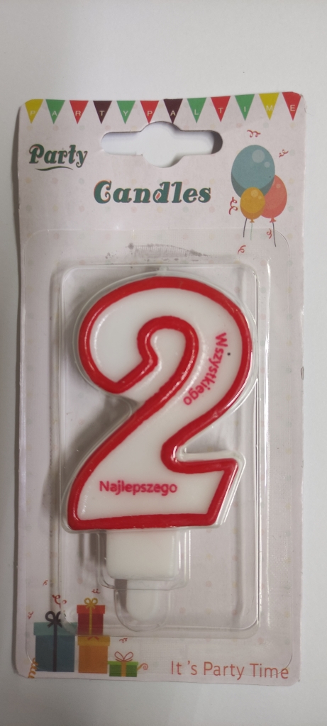 Žvakutė tortui skaičius 2 raudonu apvadu
