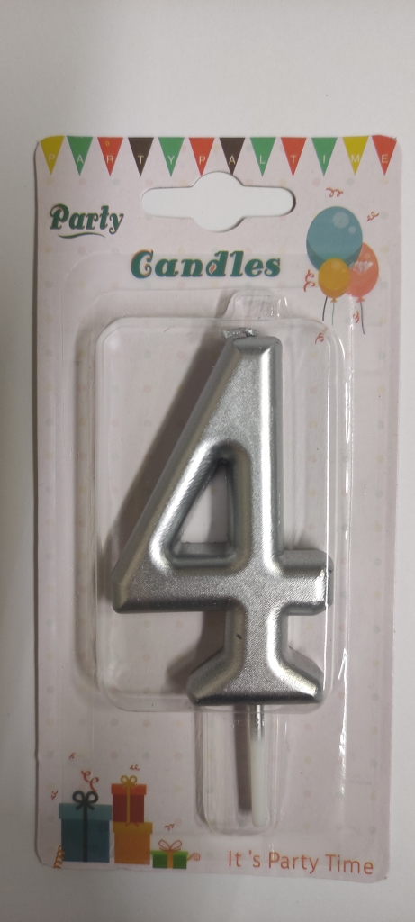 Žvakutė tortui skaičius 4 sidabrinės sp.