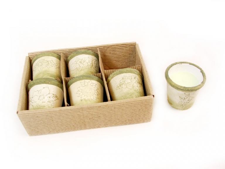Gražios žvakutės vazone, tinka prie interjero, papuošti kambarį arba padovanoti.