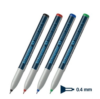 Apvali galvutė. Non-permanentinis. Brėžio storis 0,4 mm. Tinka rašyti ant įvairių paviršių. Neuždžiūna paliktas atidarytas keletą dienų.